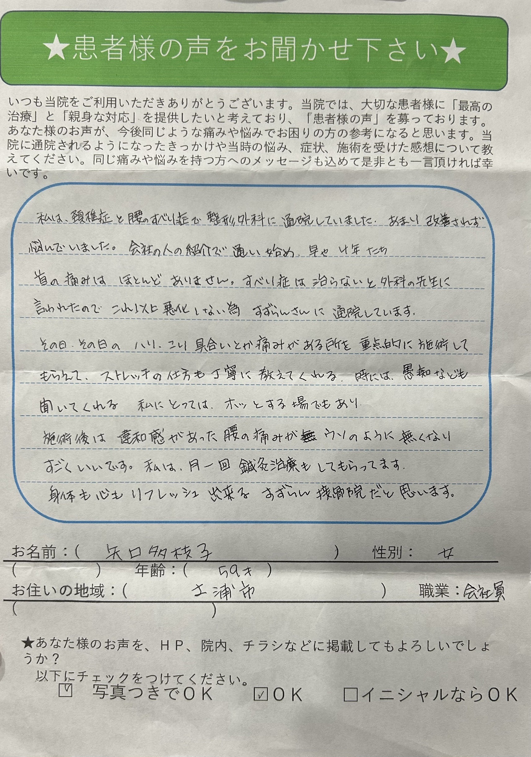 矢口多枝子様 女性 59歳 土浦市 会社員